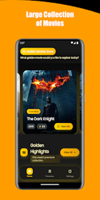 De interface van Arabic Movies Zone is modern en biedt een rijke gradient-ontwerpstijl met adaptieve thematisering. Gebruikers kunnen eenvoudig schakelen tussen lichte en donkere modus, waarbij de app zich aanpast aan de systeemvoorkeuren. De startpagina toont een carrousel met trending films en verschillende categorieën, zoals "Golden Highlights" voor premium collecties, "Golden Trending" voor populaire releases, en "Golden Classics" voor bekroonde meesterwerken. De gedetailleerde filmsectie biedt uitgebreide informatie, waaronder cast, aanbevelingen, beoordelingen en meer.